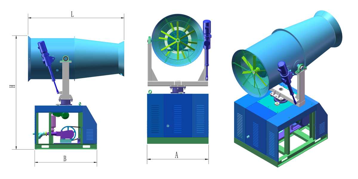 It is suitable for dust control in open-air material storage yards, coal logistics parks, open-pit mines, open-air blasting dust, enclosed unloading areas, truck unloading ports, dump truck unloading dust, large loader working dust, coastal port loading and unloading, transfer of coal, ore, bulk powder handling and other dust materials.