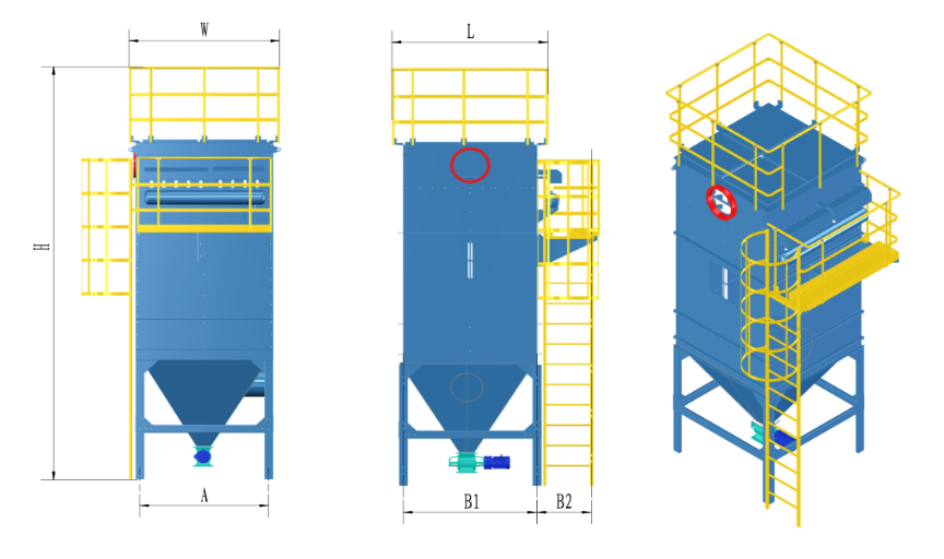 Adopting high-precision laser processing equipment and scientific and environmentally friendly surface electrostatic spraying, the entire dust collector does not require welding and is assembled by riveting with bolts and skid-mounted, making it suitable for assembly in narrow Spaces. It features high strength, excellent sealing, high efficiency, an elegant and generous appearance, and long-lasting durability. For engineering renovation projects, simplifying the difficulty of the renovation work shortens the construction period, reduces construction costs and risks.