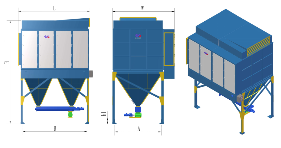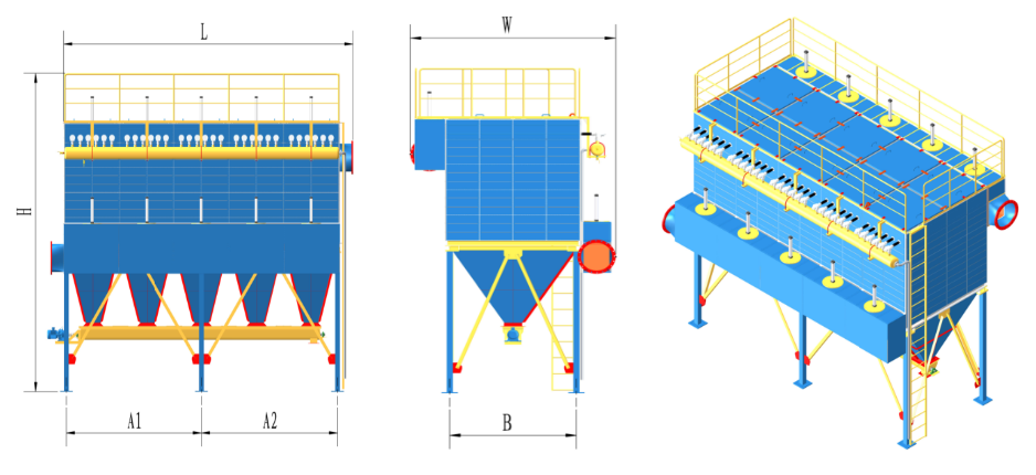 Adopting high-precision laser processing equipment and scientific and environmentally friendly surface electrostatic spraying, the entire dust collector does not require welding and is assembled by riveting with bolts and skid-mounted, making it suitable for assembly in narrow Spaces. It features high strength, excellent sealing, high efficiency, an elegant and generous appearance, and long-lasting durability. For engineering renovation projects, simplifying the difficulty of the renovation work shortens the construction period, reduces construction costs and risks.